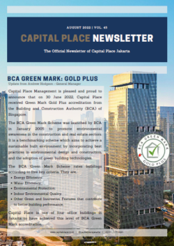 We are also pleased to announce the opening of the ‘End of Trip Facilities’, located on Level B1M. If you plan to ride your bicycle to work or want to exercise during business hours, Capital Place has secure shower facilities available to all registered occupants. The End of Trip Facilities provide you a locker to store your personal effects and complimentary soap, shampoo and a towel service.